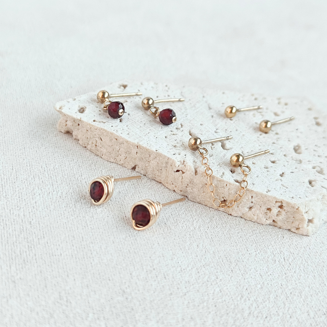 סט עגילים בר גרנט אדום